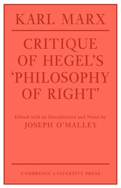 This book is a complete translation of Marx's critical commentary on paragraphs 261–313 of Hegel's major work in political theory. In this text Marx subjects Hegel's doctrine on the internal constitution of the state to a lengthy analysis. It was Marx's first attempt to expose and criticize Hegel's philosophy in general and his political philosophy in particular.