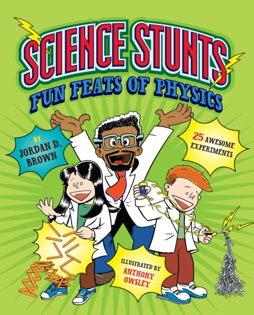 Science Stunts will start a chain reaction of fun and experimentation outside the lab. Readers will be amazed and delighted as they try magic tricks that are based in important physics concepts such as gravity, inertia, magnetism, sound vibrations, and more. Narrated by a humorous science showman, Dr. Dazzleberry (known to his fans as "Dr. Dazz"), readers go on a journey through many amazing scientific discoveries.  Amusing, edifying commentary from cartoon versions of Newton, Galileo, and Einstein inspire student scientist to experiment with glee.
